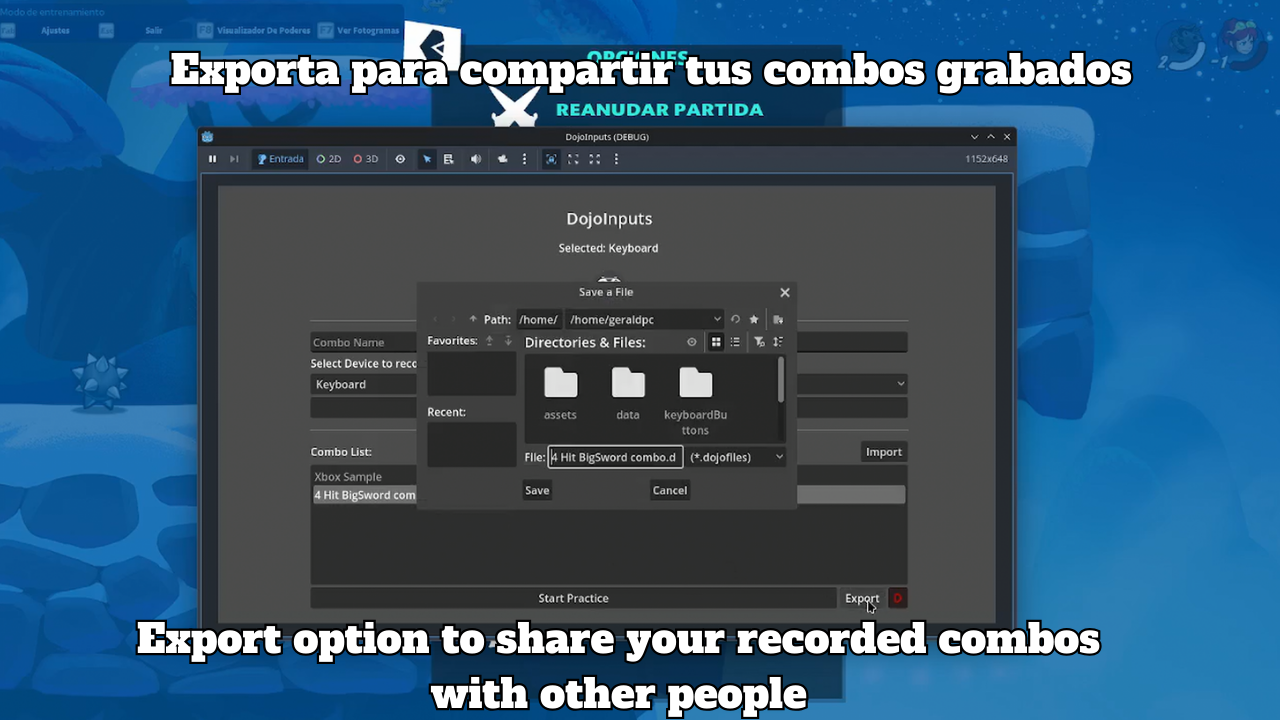 📂 Exportar e importar combos para compartirlos con otros jugadores